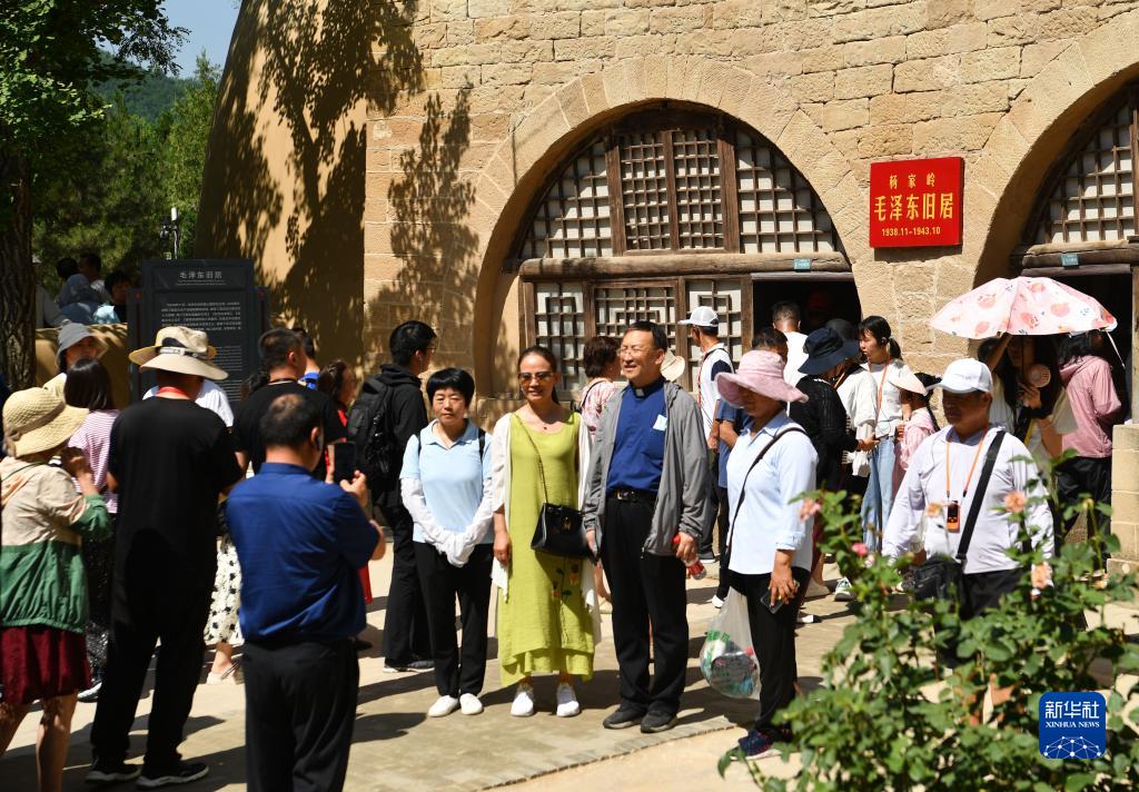 6月30日,觀眾在楊家嶺革命舊址參觀毛澤東舊居。