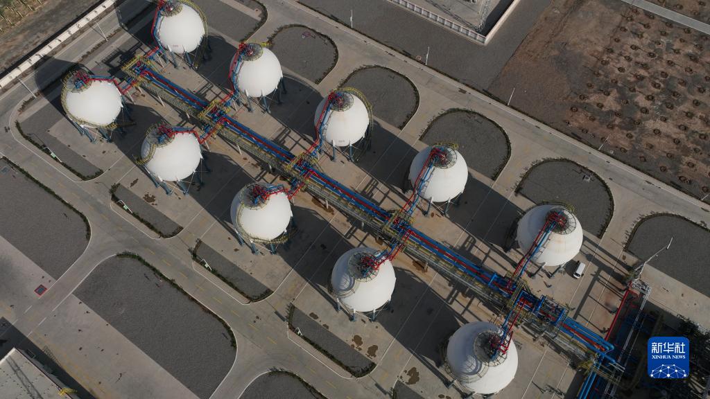這是6月30日拍攝的中國石化新疆庫車綠氫示范項目制氫廠儲氫罐區(無人機照片)。