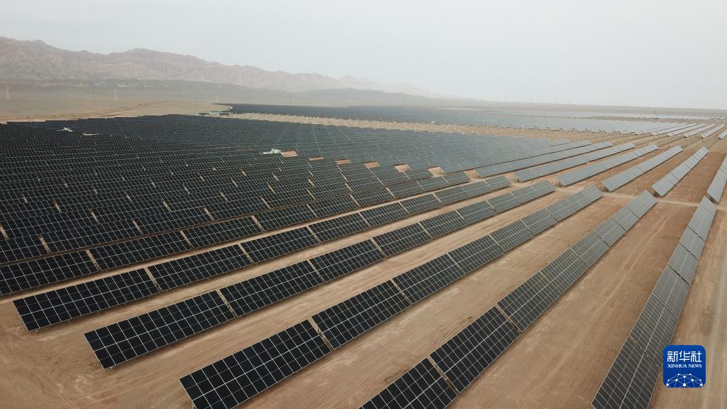 這是6月28日拍攝的中國石化新疆庫車綠氫示范項目光伏電站(無人機照片)。