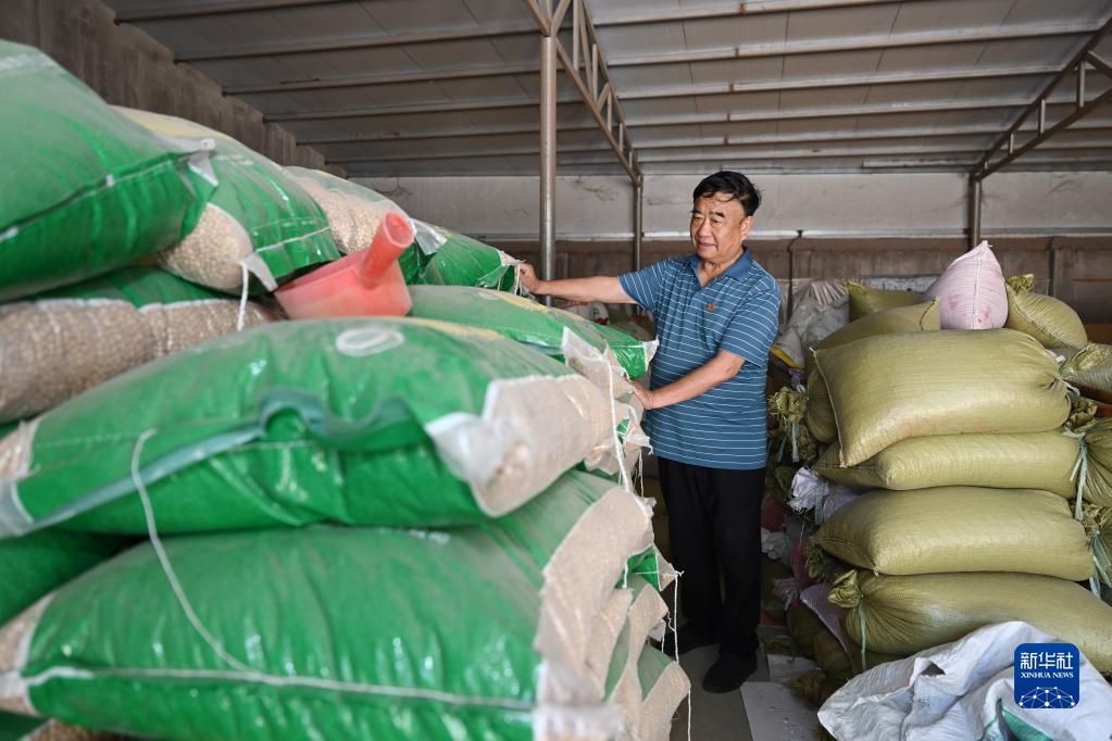 6月8日,徐淙祥在太和縣淙祥現代農業種植專業合作社整理大豆種子,為夏種做準備。