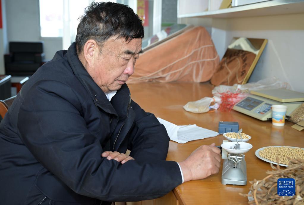 2月21日,在太和縣淙祥現代農業種植專業合作社,徐淙祥在實驗室里對農作物樣品進行稱重和記錄。
