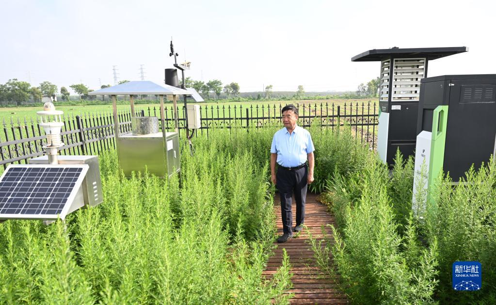 6月26日,徐淙祥在國家農作物病蟲疫情田間監測安徽省太和縣張槐村監測站,準備查看田里的風速、風向、光照度等指標。