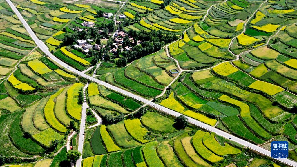 近日,甘肅省積石山保安族東鄉族撒拉族自治縣山鄉油菜花迎來盛花期。金色的油菜花扮美鄉村,景美如畫。