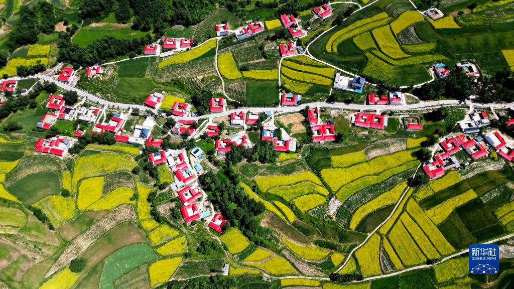 近日,甘肅省積石山保安族東鄉族撒拉族自治縣山鄉油菜花迎來盛花期。金色的油菜花扮美鄉村,景美如畫。