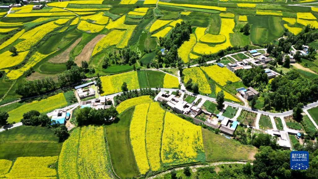 近日,甘肅省積石山保安族東鄉族撒拉族自治縣山鄉油菜花迎來盛花期。金色的油菜花扮美鄉村,景美如畫。
