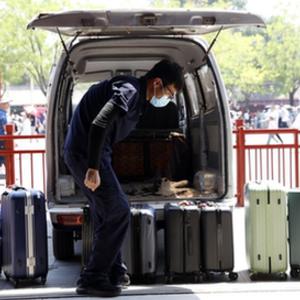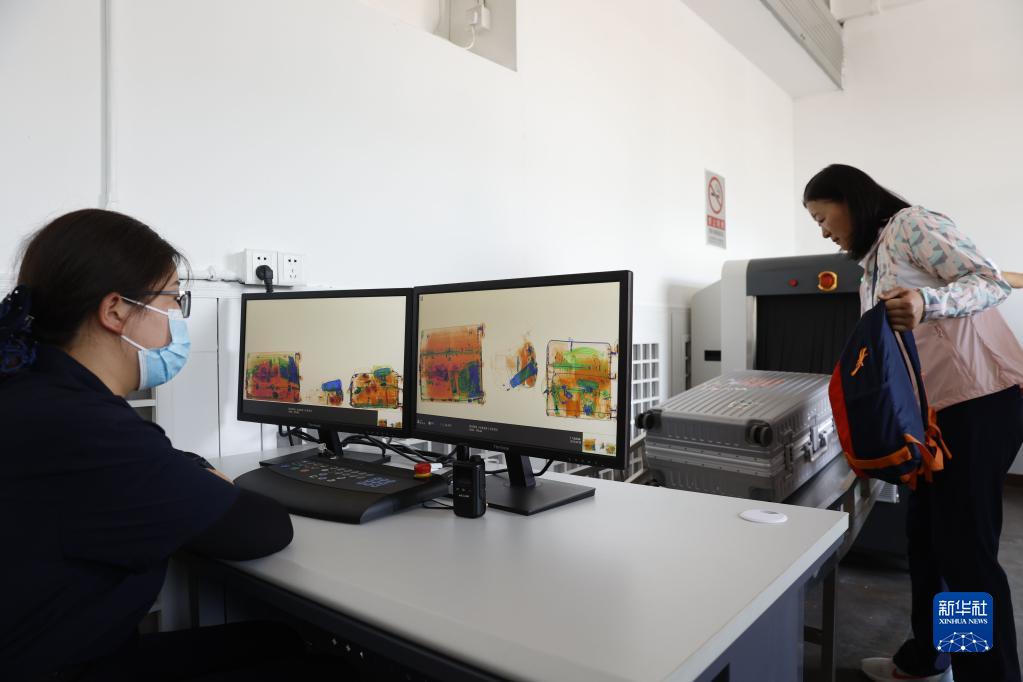 6月30日,工作人員在故宮觀眾服務中心對游客寄存的行李進行安檢。