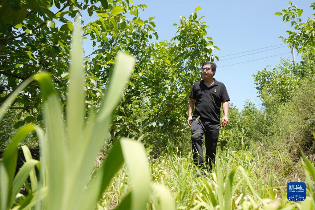 6月30日,賈志華在河北省臨城縣賈莊村查看核桃長勢。