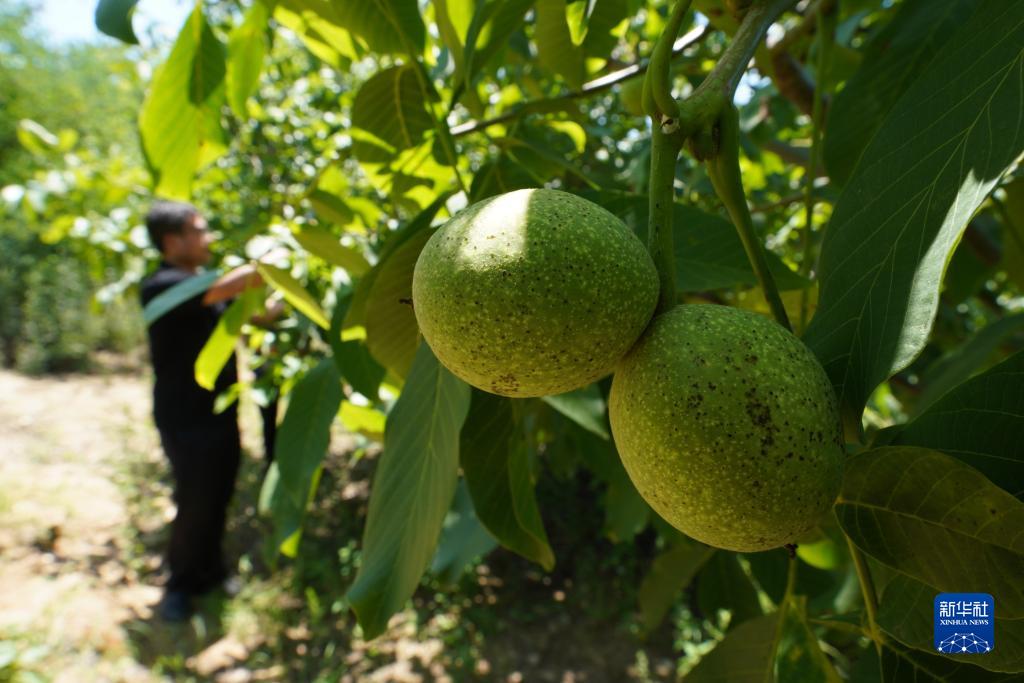 6月30日,賈志華在河北省臨城縣賈莊村管理種植的核桃。