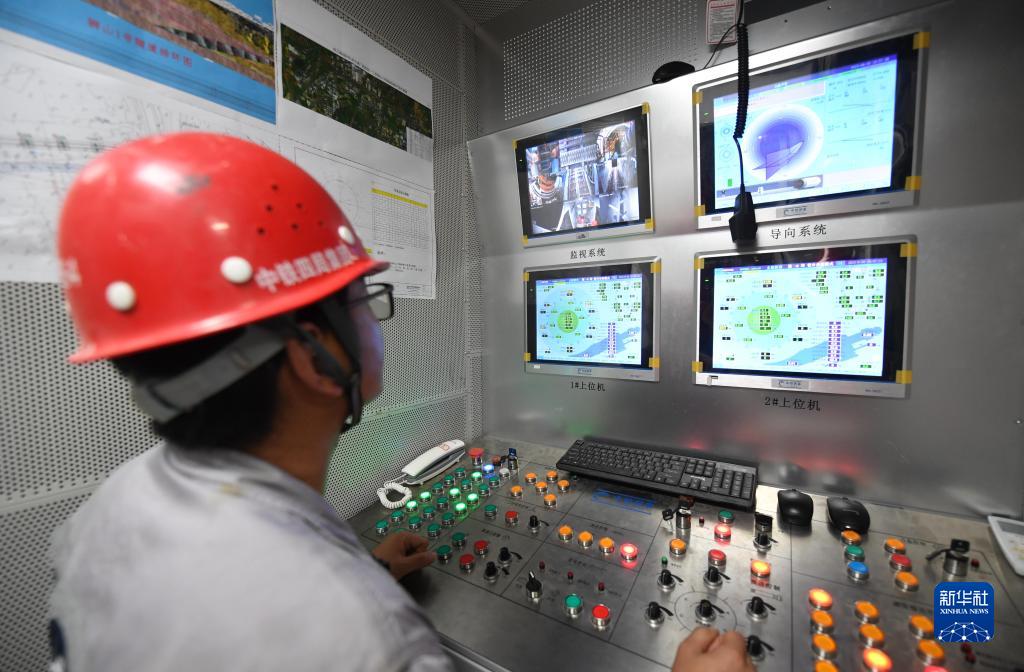 6月30日,工人在廣東佛山市獅山鎮獅山1號隧道中鐵四局城軌分公司“初心號”盾構機操作間值守。