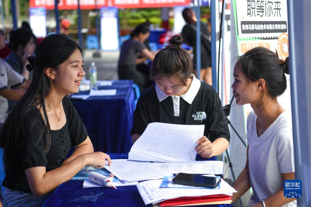 當日,貴州省黔東南州2023年“職引黔程·點亮未來”高校畢業生大型招聘會在貴州省黔東南民族職業技術學院舉行,來自貴州貴安新區及粵港澳大灣區等地的122家企業為黔東南州高校畢業生提供近4000個就業崗位。