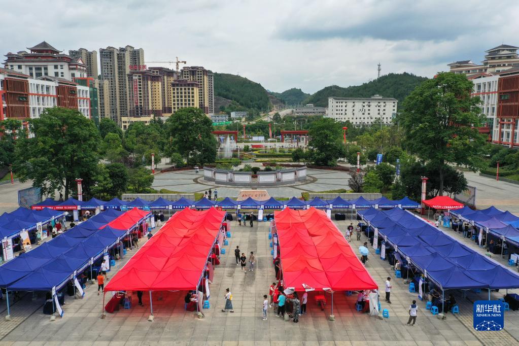 這是6月30日拍攝的貴州省黔東南州2023年“職引黔程·點亮未來”高校畢業生大型招聘會現場(無人機照片)。