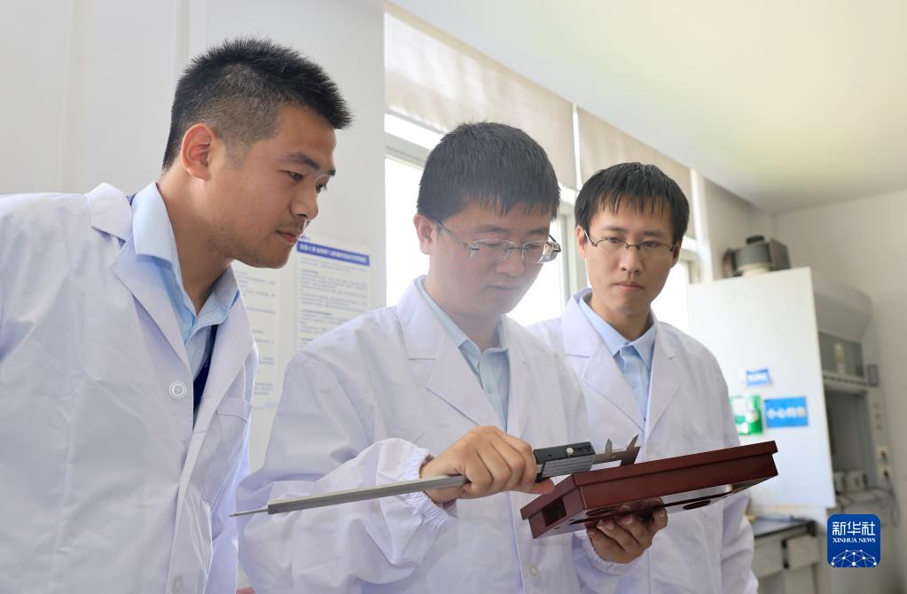 6月27日,江蘇海寶新能源有限公司技術部部長楊海濤(中)在對新設計的產品樣件進行核對確認。