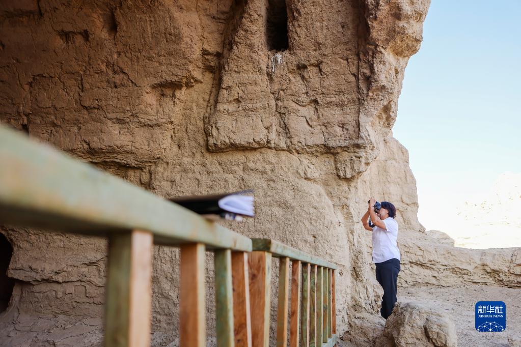 6月26日,古麗拜克熱·買明在交河故城內巡護時拍攝故城建筑的照片。