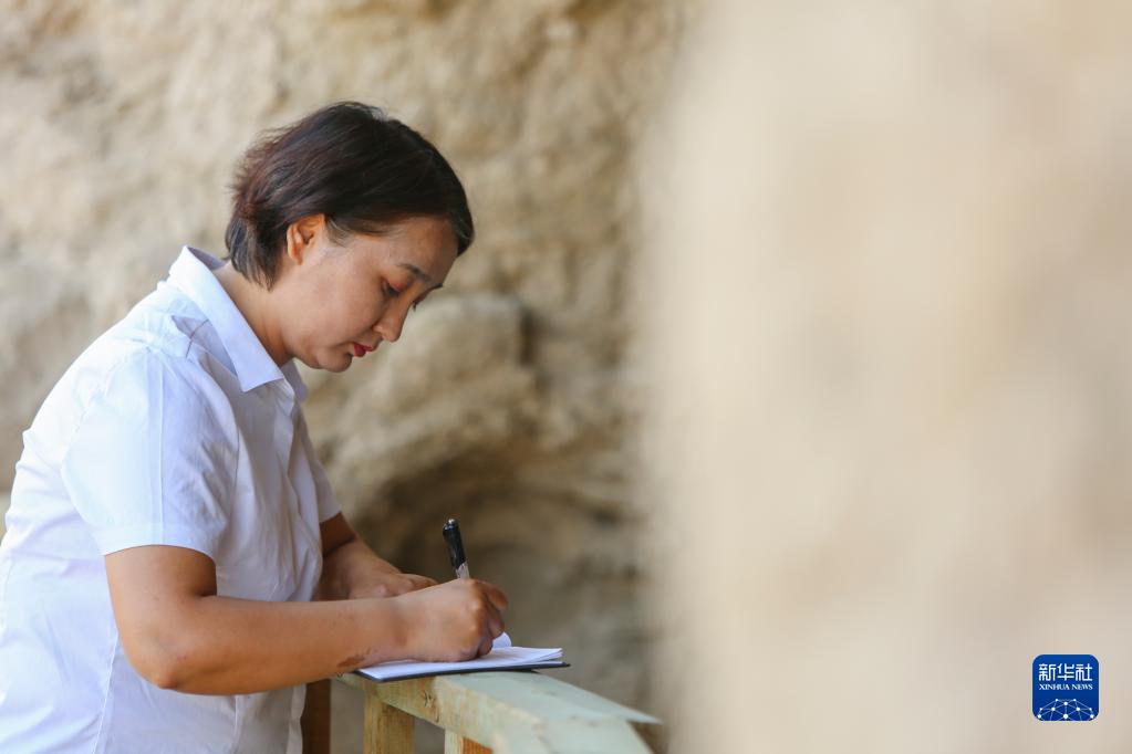 6月26日,古麗拜克熱·買明在交河故城內巡護時做記錄。