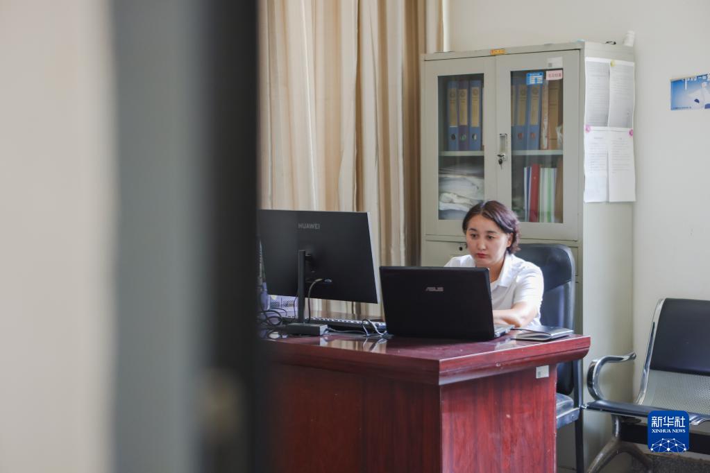 6月26日,古麗拜克熱·買明在辦公室整理數據資料。