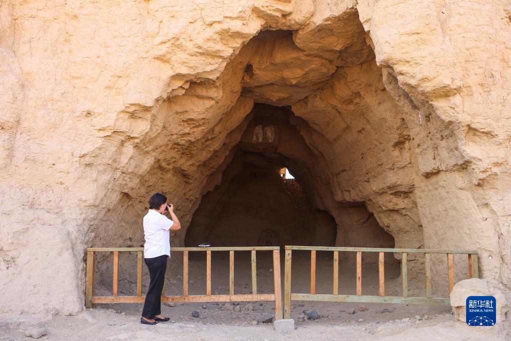 6月26日,古麗拜克熱·買明在交河故城內巡護時拍攝故城建筑的照片。