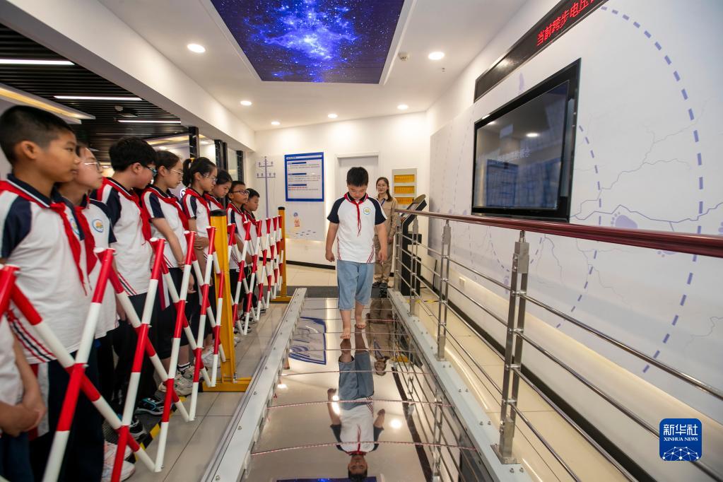 6月30日,在江蘇省泰州市安全技能實訓基地,講解員指導學生進行體驗,了解跨步電壓的危害。