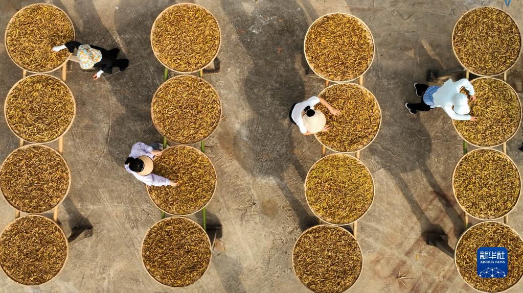 連日來,湖南省衡陽市祁東縣黃花菜進入采收旺季,當地菜農搶抓農時采摘、加工、晾曬黃花菜。祁東種植黃花菜有著悠久的歷史,形成了從種植到加工全鏈條覆蓋,有效帶動當地農戶增收致富。新華社發(曹正平攝)