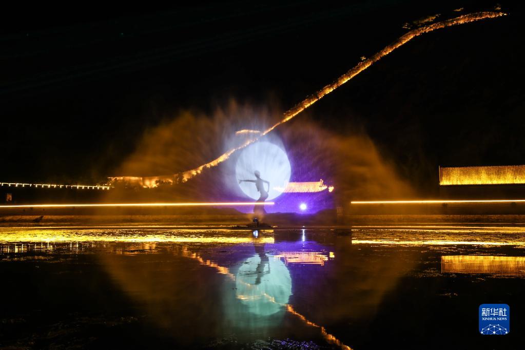 6月30日,葫蘆島市綏中縣九門口長城景區內上演水幕電影。