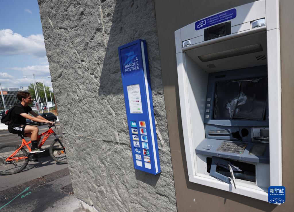 6月30日,在法國上塞納省楠泰爾市,一個提款機被示威者毀壞。