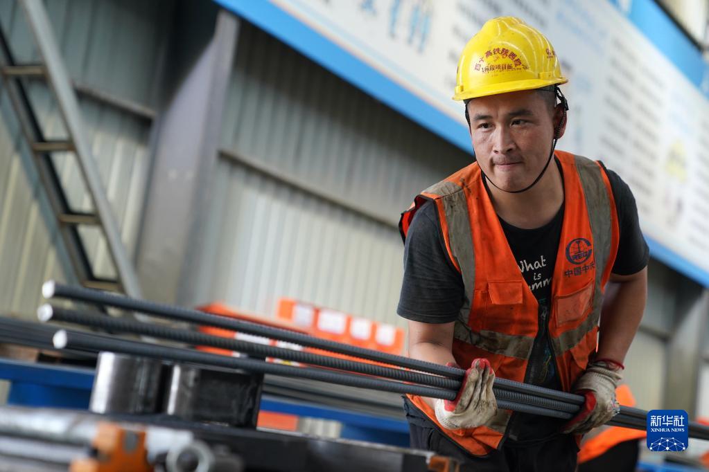 6月30日,施工人員在中鐵上海工程局藍田制梁場加工預制箱梁使用的鋼筋。