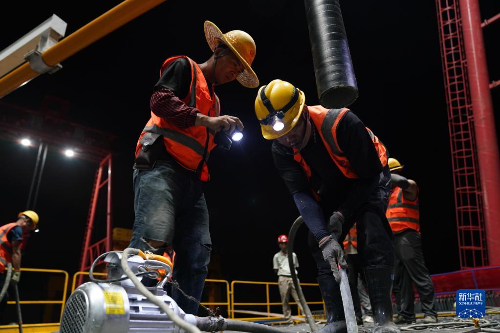 6月30日,施工人員在中鐵上海工程局藍田制梁場澆筑首榀預制箱梁。