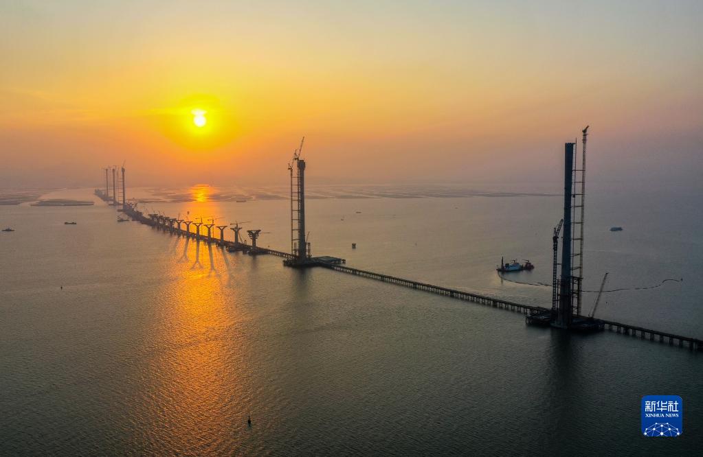 2023年1月9日,高欄港大橋東主塔在跨海通道大橋5座主塔中率先封頂。2023年6月19日,中交路建黃茅??绾Mǖ理椖坎吭诤V?座主塔率先完成首榀鋼箱梁架設,標志著項目轉入上部結構施工階段。