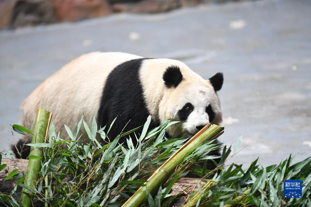 7月1日,一只大熊貓在西寧熊貓館活動。
