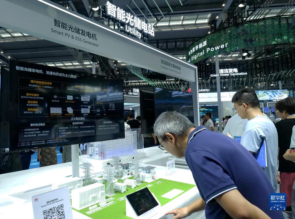 6月30日,觀眾在展會上觀看智能光儲電站模型。