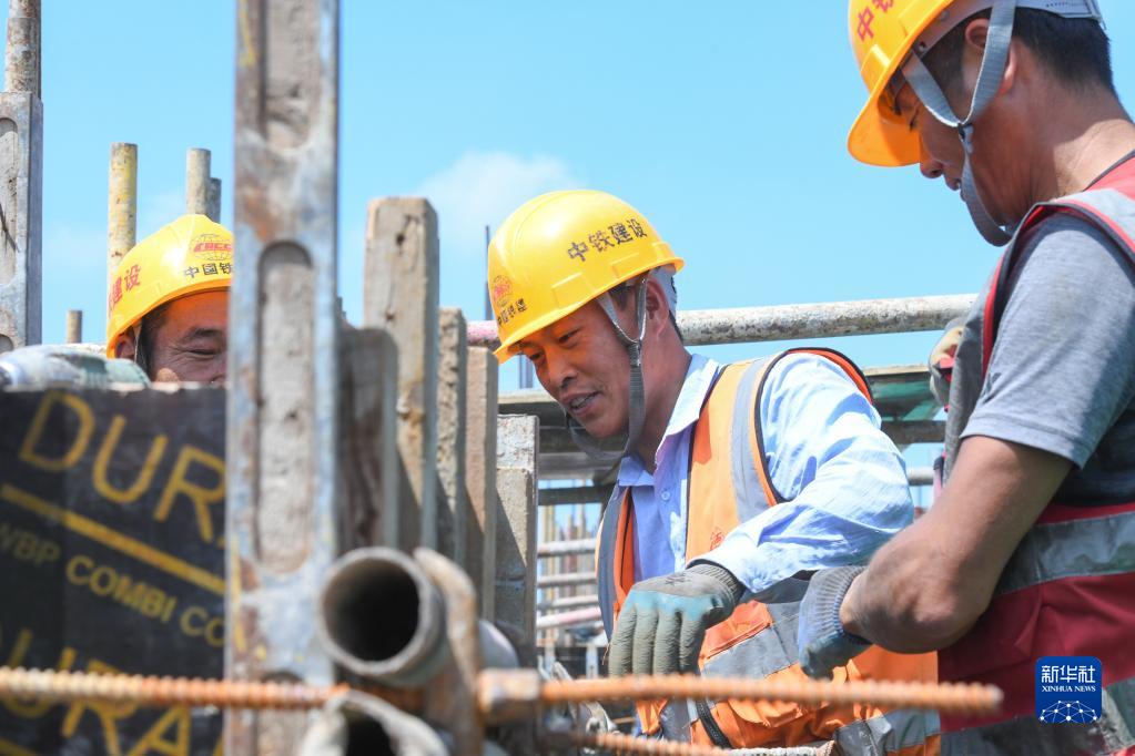 6月30日,工人在鐵力站建設施工現場作業。