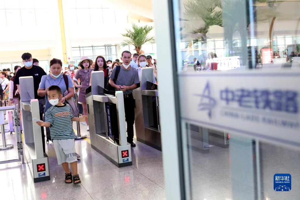 7月1日,旅客在位于云南景洪市的西雙版納站通過閘機進站乘車。
