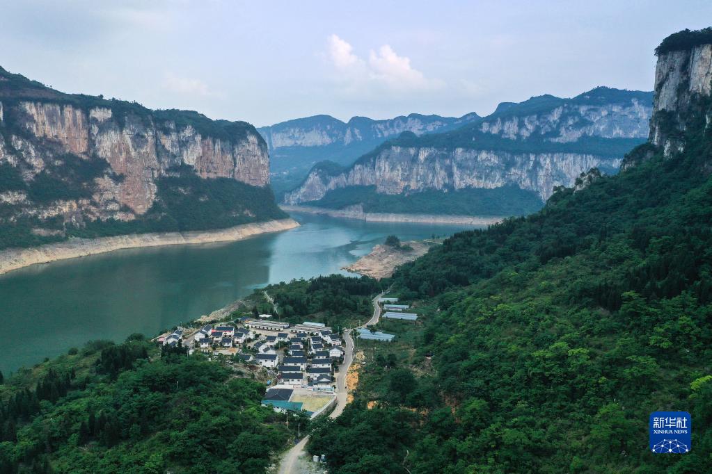 地處烏江源頭水域的貴州省黔西市新仁苗族鄉化屋村風光(5月30日攝,無人機照片)。