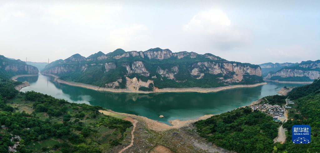 地處烏江源頭水域的貴州省黔西市新仁苗族鄉化屋村風光(5月30日攝,無人機照片)。
