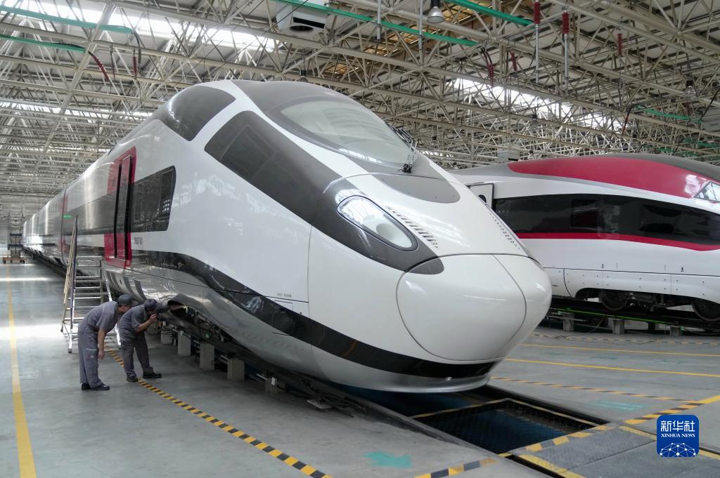 7月1日,河北省唐山市豐潤區中車唐山公司的工人在動車組調試車間工作。