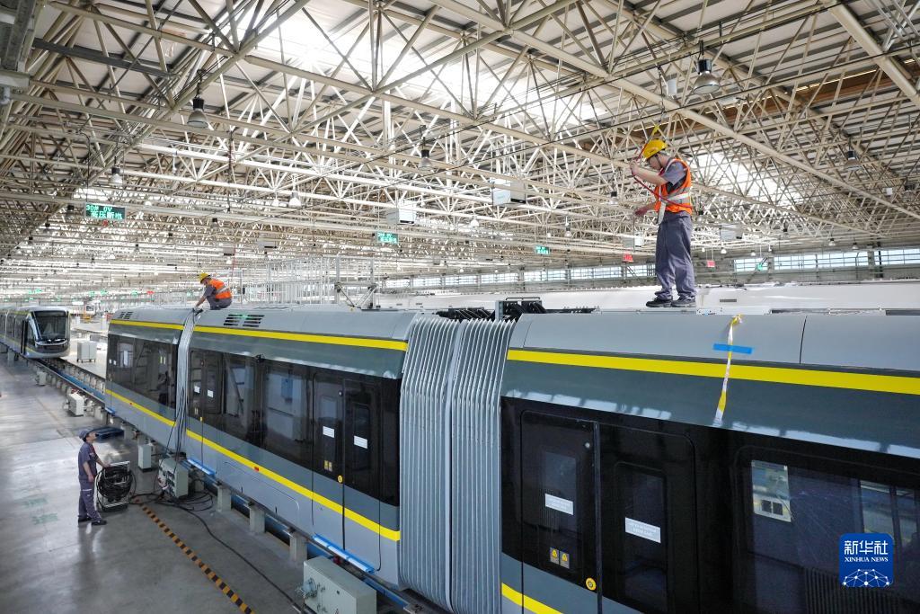 7月1日,河北省唐山市豐潤區中車唐山公司的工人在地鐵列車生產線上工作。