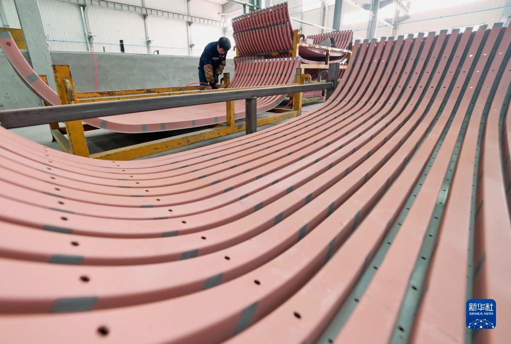 7月1日,工人在河北省唐山市豐潤區一家動車組列車配件企業的生產車間工作。
