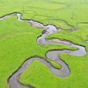 當下,甘肅省定西市岷縣狼渡灘草原水草豐茂,曲折蜿蜒的河流靜靜流淌,岸邊牛羊漫步,原野駿馬馳騁,構成一幅壯美的畫卷。