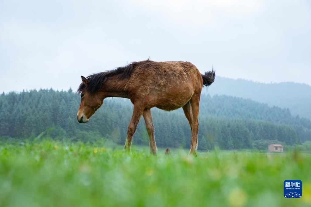 7月1日,小馬駒在狼渡灘草原上吃草。