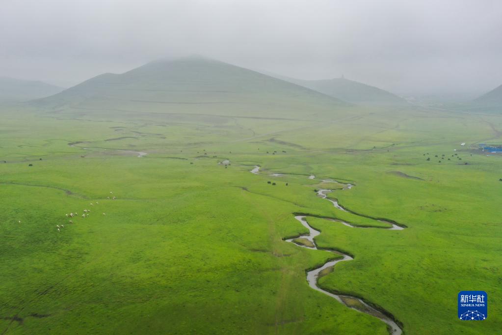 這是7月1日拍攝的狼渡灘草原風光(無人機照片)。