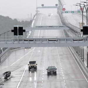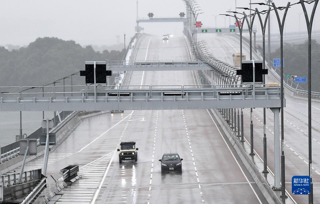 7月1日,香港本地單牌車行駛在港珠澳大橋香港段。