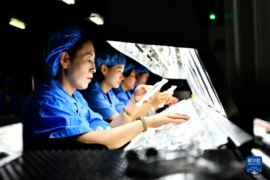 6月29日,在日照高新技術產業開發區日照華仁藥業質檢車間,工作人員質檢注射液。