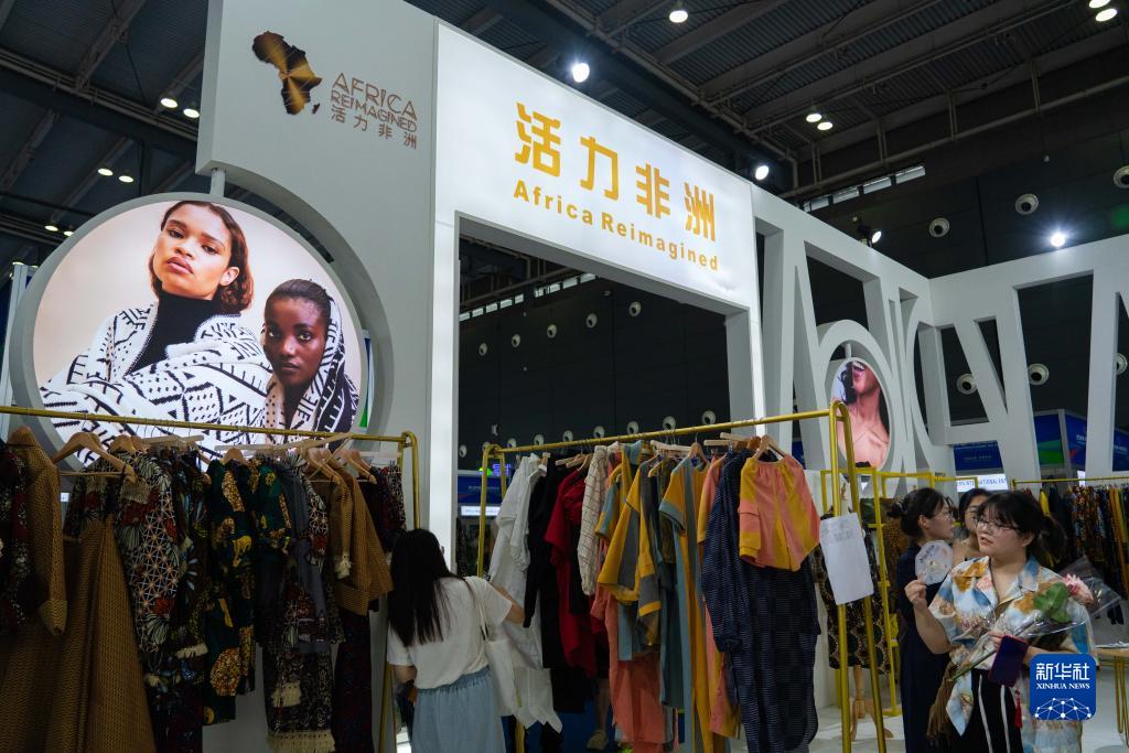 7月1日,在第三屆中國-非洲經貿博覽會上,人們選購非洲服裝。