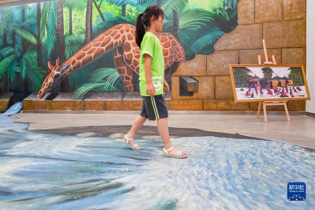 7月1日,在中非經貿合作促進創新示范園(湖南高橋大市場)的烏干達國家館,小朋友在參觀展品。
