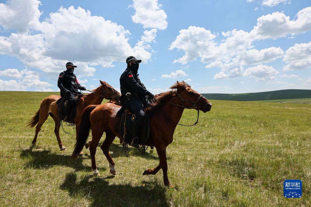 7月1日,負責安保的騎警們在草原上巡邏。