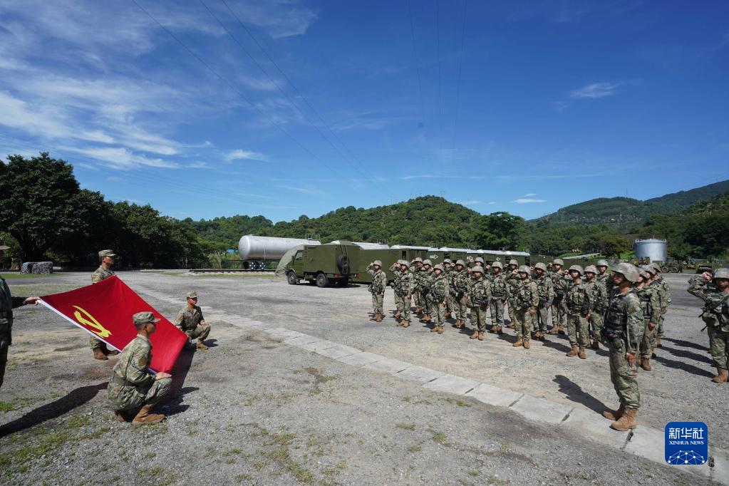 聯勤保障部隊某部組織官兵在演訓期間重溫入黨誓詞(6月30日攝)。