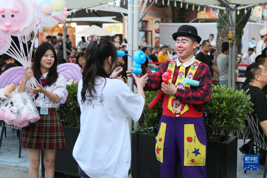7月1日,一名游客在啤酒文化音樂節上領取氣球。