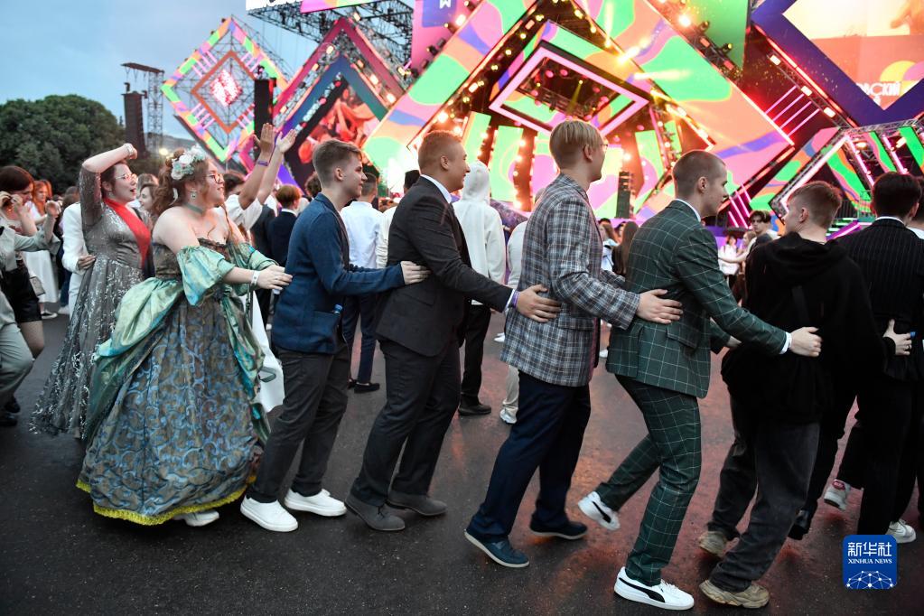 莫斯科高爾基公園當日為中學畢業生舉行慶?;顒?。