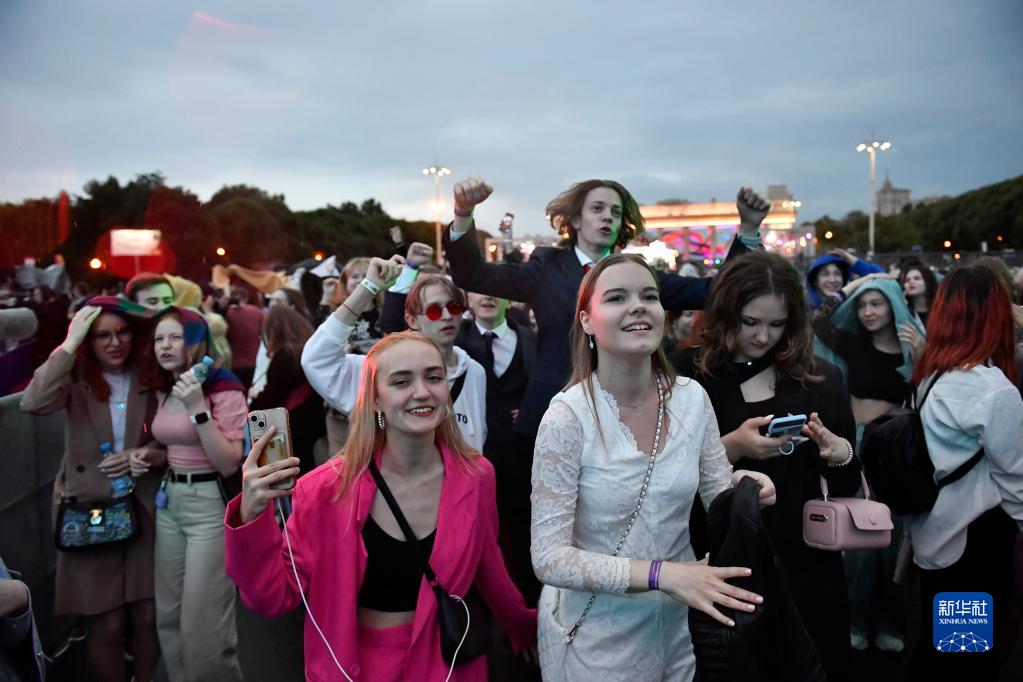 莫斯科高爾基公園當日為中學畢業生舉行慶?;顒?。