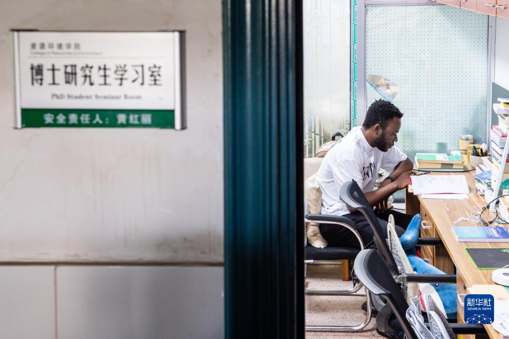 6月26日,尼克在湖南農業大學環境與生態學院博士研究生學習室自習。