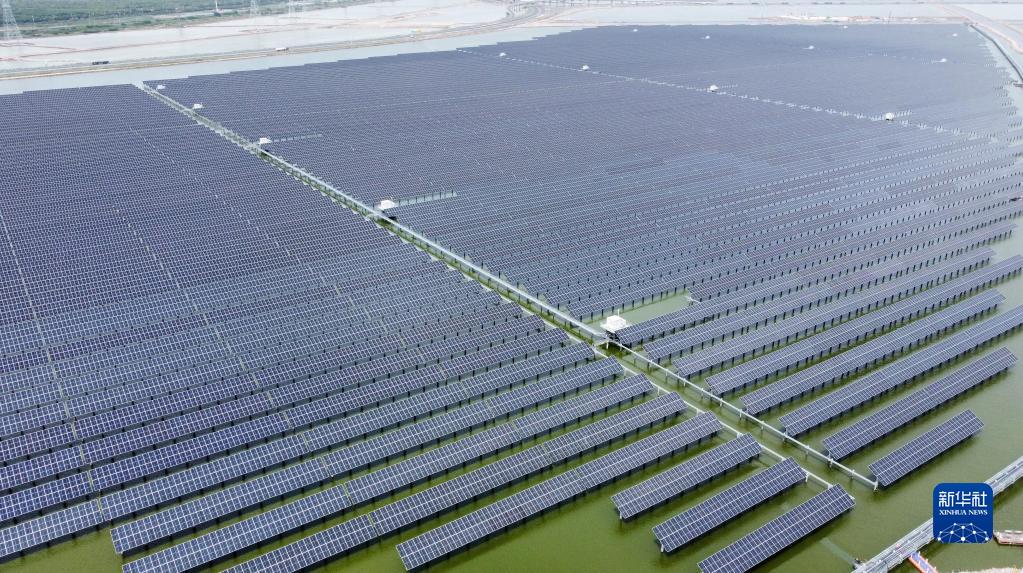 這是7月1日拍攝的龍源天津海晶鹽光互補項目一景(無人機照片)。